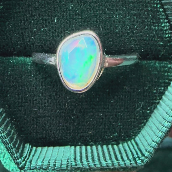 Adjustable Faceted Ethiopian Opal Ring